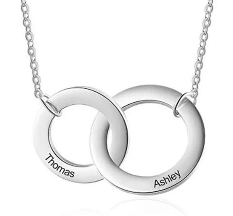 Palabras personalizadas nombre grabado de acero inoxidable la eternidad collar de círculos